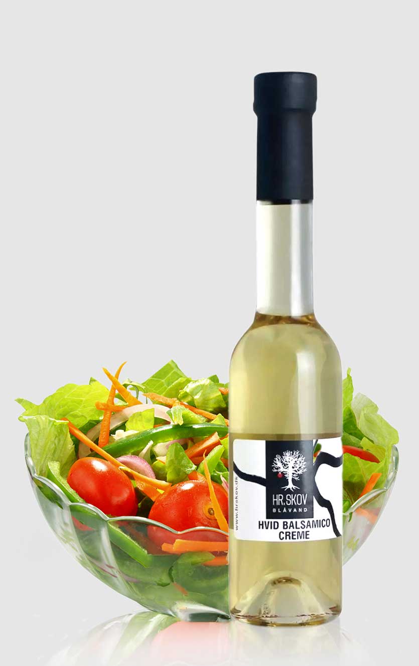 . Hr. Skov ’S hvide balsamico creme er en lækker og syrlig balsamico. Der er reduceret med rørsukker.